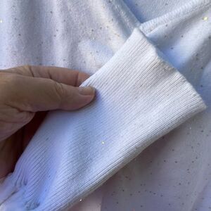 525 America size M deep V neck tiny sequined ruched front sweater. Long balloon sleeves with roll up cuffs. 83% cotton and 17% nylon. Pit to pit 19” and length 20”.