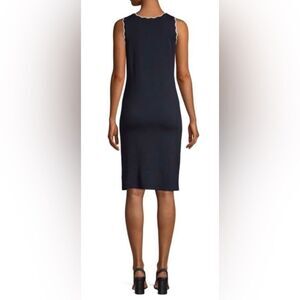Gently worn Elegant sleeveless dress. Features white trim. Perfect for any occasion. Rayon/nylon blend and hand washable.