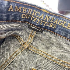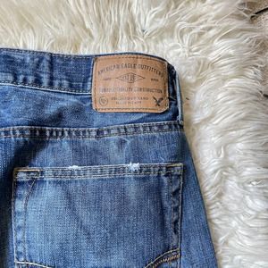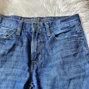 American Eagle Men's Original Straight Cut Off Jean Shorts. Medium light wash.
