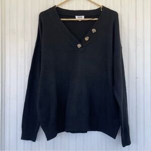 525 American Women's Black V Neck Long Sleeve Oversized Sweater Size Large