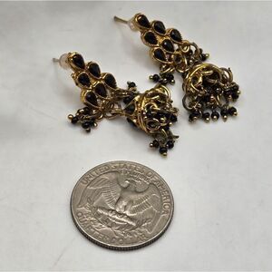 "5/$25" Antique Gold Finish Black Bali Bead Dangle Post Earrings
