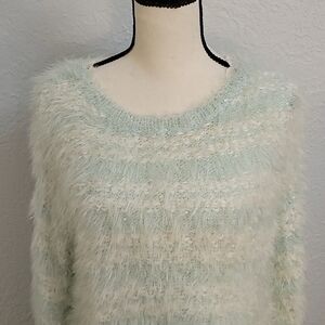 5/$25 Apt. 9 Oversized Mint Metallic Sequin Shaggy Eyelash Slouchy Sweater