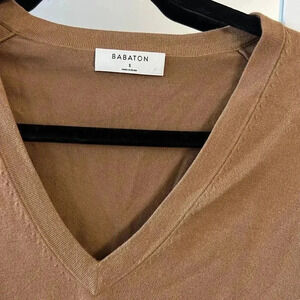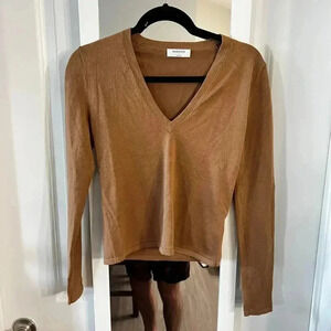 525 Aritzia Babaton V Neck Long Sleeve Sweater Size Small Color Camel