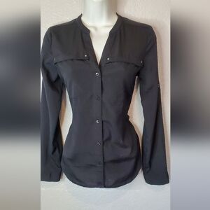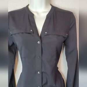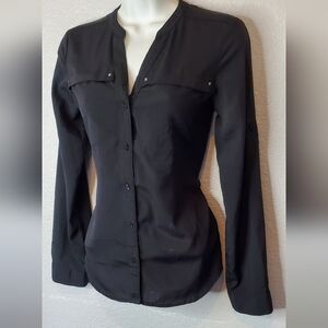 💚5/$25 Attention Studded Black Fitted Long Sleeve Button Down Shirt Size XS