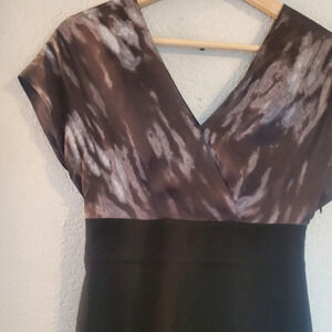 Banana Republic Bodice Black & Gray Pencil Sheath Dress Size Small Silk & Wool Fitted Dress Silk Dress Wool Dress Dressy Cocktail Dress Pencil Dress Short Sleeve Dress V Neck Dress Low Cut Dress Size Small Size XS Size 0