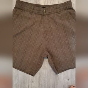 💚5/$25 Billabong Brown Plaid Flat Front Shorts Size 33 Waist