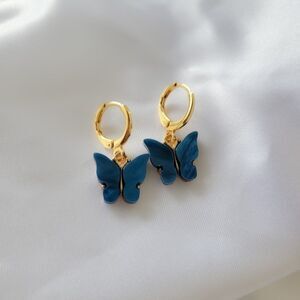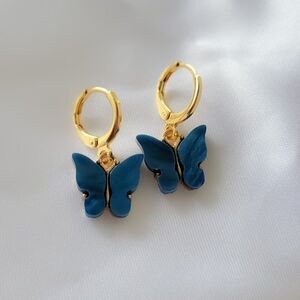 5/$25 Blue Butterfly Charm Earrings Gold Huggie Hoops Resin Butterfly Earrings