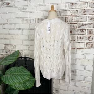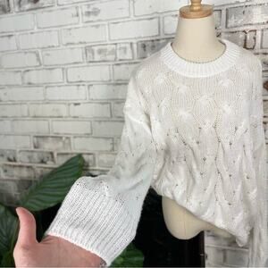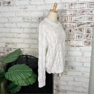 525 Born in Brooklyn Cable Knit Cotton White Crew Neck Long Sleeve Sweater M