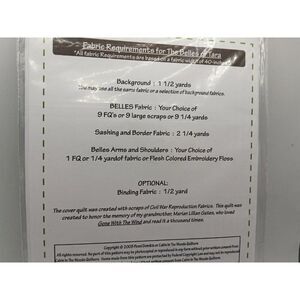 This Cabin In The Woods Quilters pattern, titled "The Belles Of Tara," is perfect for any quilting enthusiast. With a size of 53" x 60", this applique-style pattern features a beautiful design that will surely make a statement in any room. The pattern is uncut and ready for use, making it a great addition to any quilting collection.