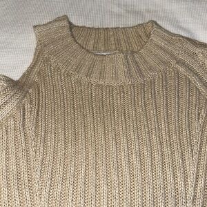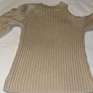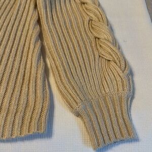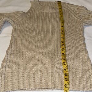 525 Cable Knit Cut Out One Shoulder Puff Sleeve Pullover Size XS Cream