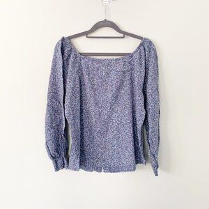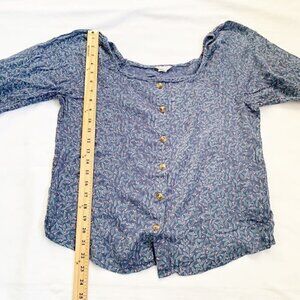 5/$25 Caslon boho peasant blue floral button front off shoulder elastic wrist