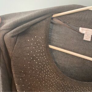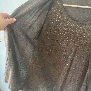 🔹5/$25🔹 Charter Club Gray 2 Piece Cardigan w/Sparkle Gem Cami. Petite Small