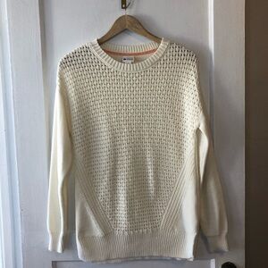 Cozy Stylus sweater in crème cotton with a cool open knit on the front. In excellent condition.