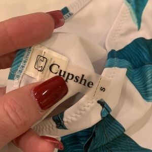 💐5/25 Cupshe bikini swim bottom blue green leaves white