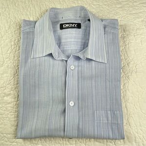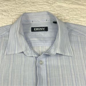 š5/$25 DKNY Dona Karan New York Mens Button Up Shirt Striped Blue