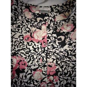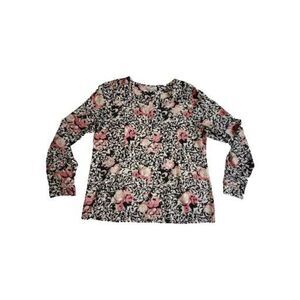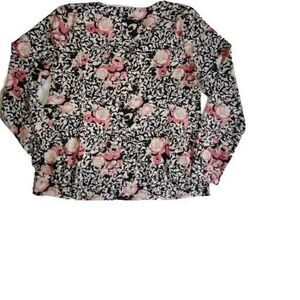 5/$25 EUC Sz L Floral Print Black Blush Pink Long Sleeve Tunic Blouse