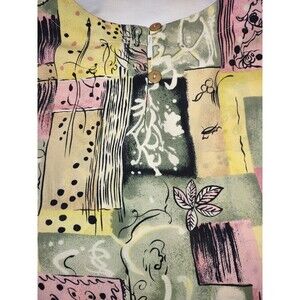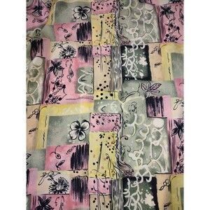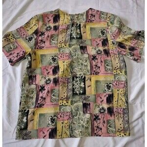 5/$25 EUC Sz Med Blouse Short Sleeve Color Block Floral Pink Green Yellow