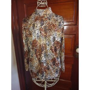 5/$25 EUC Sz Med Long Sleeve Pullover Animal Print Mock-Neck Cheetah Leopard
