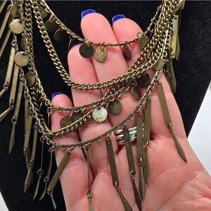 "5/$25" Edgy Brasstone Multi-layered Spike Disc Dangle Charm Necklace