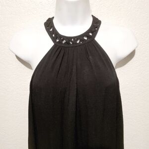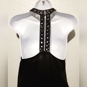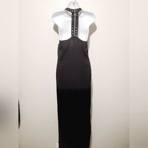 💚5/$25 Ella Moss Black Halter T Back Long Maxi Slip Dress With Leg Slits Small