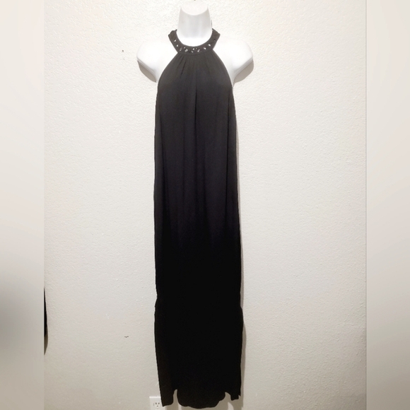💚5/$25 Ella Moss Black Halter T Back Long Maxi Slip Dress With Leg Slits Small