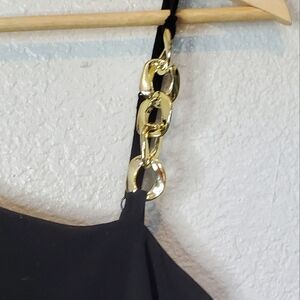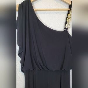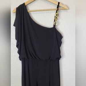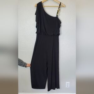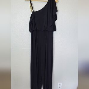 💚5/$25 Emma & Michele Black Gold Chain One-Shoulder Dressy Jumpsuit Wide Leg