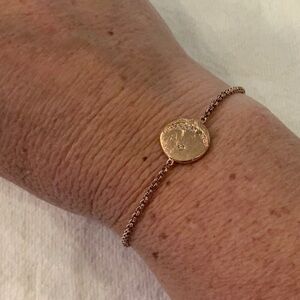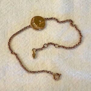 💐5/25 Fossil dainty crystal stone circle centered pendant style gold tone