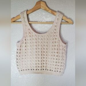 💚5/$25 Freshman 1996 Cream Open Knit Sleeveless Crop Tank Top Size Small