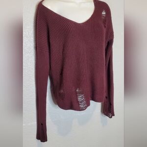 💚5/$25 Garage Distressed Burgundy Off The Shoulder Oversized Knit Sweater Small