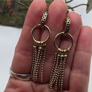 "5/$25" Goldtone Doorknocker Long Bead Lightweight Post Dangle Earrings