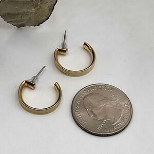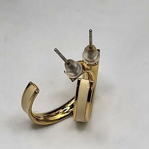 "5/$25" Goldtone Ivory Colored Enamel Small Hoop Earrings