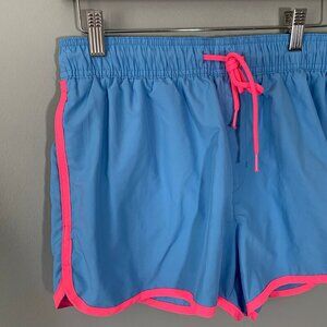 5/$25 H&M blue with pink lining retro 90's lined elastic waist running shorts