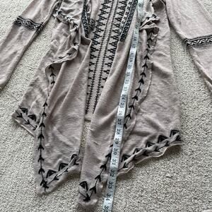 💖5/$25 Haute Project Boho Aztec Embroidered Cardigan Tan Asymmetrical Size S