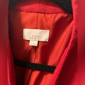 Red cropped blazer great for the upcoming holiday season! Tweed texture. Size 6. No holes, rips or stains.