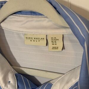 5/$25 Item Rorie Whelan Golf Shirt Blue W/White Stripes