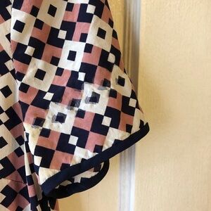 Cute silk J.Crew shortsleeved blouse. Does have some damage to the back of the sleeves and the back on the right side. Can be seen in the last four photos. Price reflects.