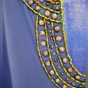 💚5/$25 Jones New York Cobalt Blue Beaded Crystal Neck Blouse Size XS