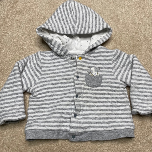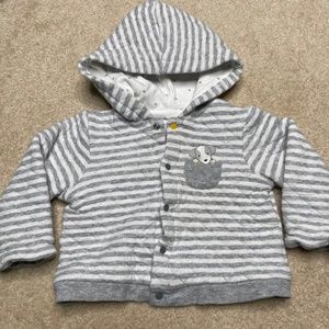 5/$25! Little Me gray and white striped button down hooded sweatshirt size 9 M