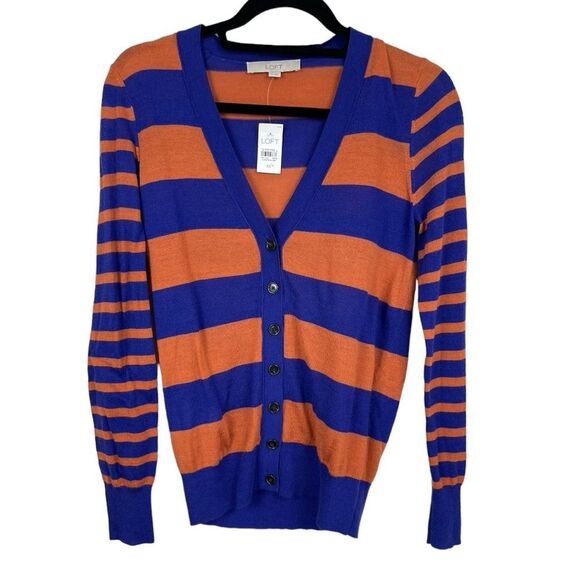 🥑5/$25 Loft Wool Blend Button up V-Neck Cardigan, Blue Orange Stripes size XS