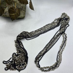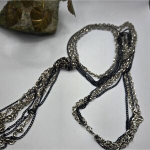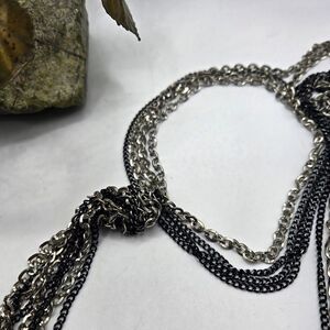 "5/$25" Long Silvertone Gunmetal Multistrand Knot Costume Necklace