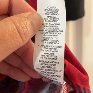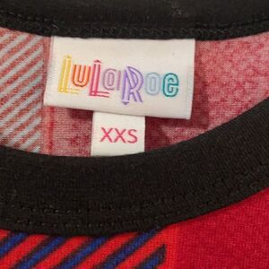 (5/$25) LuLaRoe Red & Black Square Print Raglan Randy top, size XXS. New without tags. Bundle with other items in my closet for a discount. Offers welcome!