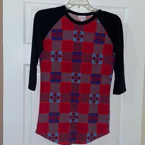 (5/$25) LuLaRoe Red & Black Square Print Raglan Randy top