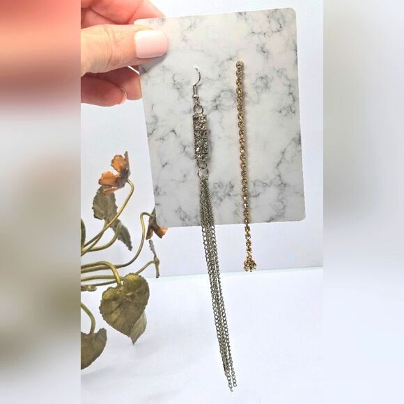 "5/$25" Mismatched Long Chain Silver & Gold Tone Rhinestone Dangle Earrings