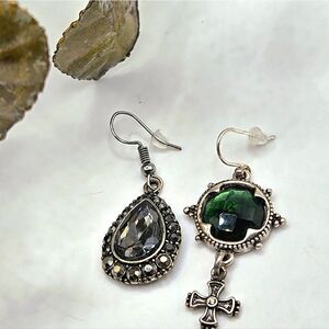 "5/$25" Mismatched Silvertone Green/Gray Celtic Dangle Earrings
