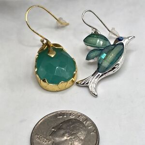 "5/$25" Mismatched Whimsical Green Bird Dangle Earrings