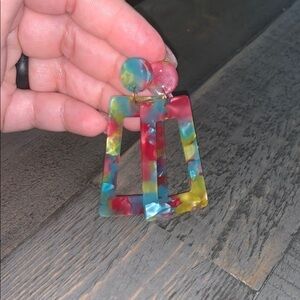 5/$25 Mottled Acrylic Colorful Post Earrings 2.3” NEW