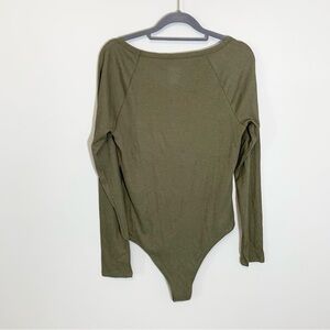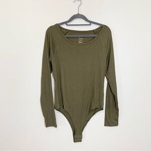 5/$25 NEW A New Day olive Green rib knit stretch long sleeve bodysuit - Large