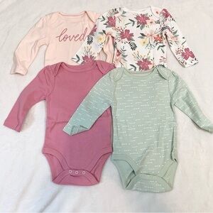 5/$25 NEW Cloud Island Baby girl's 4 pack meadow long sleeve cotton bodysuit