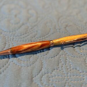 5.25” NEW Hand-carved Wooden Ball Point Pen RoseGold-tone Accents