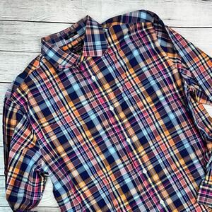 5/$25 Neiman Marcus Men's Trim Fit Bright Multicolor Plaid Buttoned Shirt Large